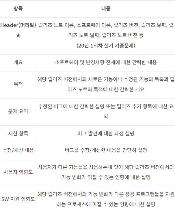 - 개발 과정에서 정리된 릴리즈 정보를 소프트웨어의 고객과 공유하기 위한 문서